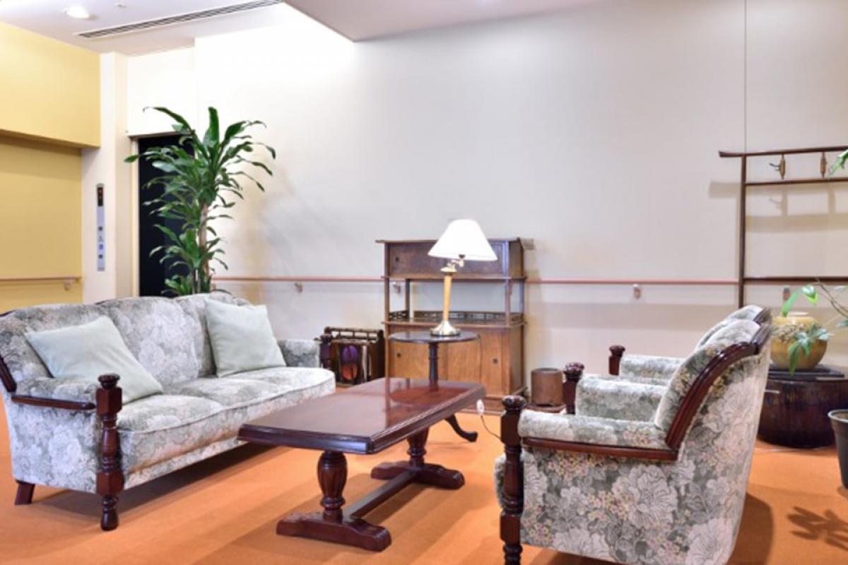 - 居室設備緊急通報装置、外線電話回線、テレビ回線、キッチン 、ミニキッチン、電磁調理器、玄関引き戸扉、玄関インターホン、下駄箱、オートロック、食卓テーブルセット、ソファ、棚、収納棚、クローゼット、居室内引き戸式ドア、手すり、リビングルーム、和室、床暖房、フローリング、フラットフロア、防災設備、空調換気設備、照明器具、フットライト、エアコン、電動介護ベッド、防火カーテン、鏡、トイレ、車椅子対応洗面化粧台、洗面化粧台、浴室、追焚機能付バス、シャワー、浴室暖房乾燥機、テラス、物干しベランダ、避難設備
