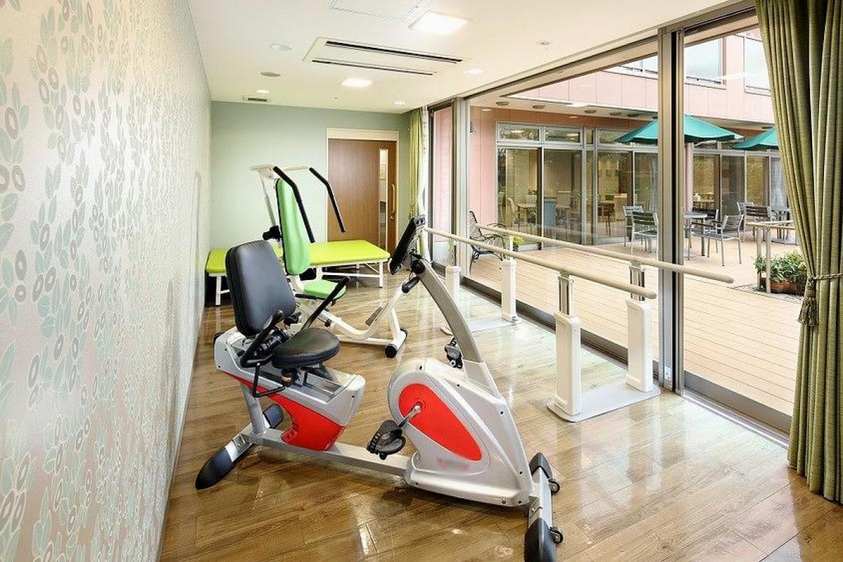 - 共用施設設備ダイニングルーム兼機能訓練室、ティールーム、ビューティサロン(各種の外部サービス〔利用者実費負担〕を受けるための部屋)、ファミリールーム、機能訓練室、健康管理室兼事務室、浴室
